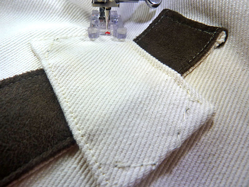 - Repeat with the remaining pocket and the interfaced back twill panel.