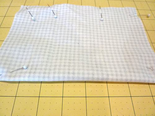 - Fold in half, right sides together, so it is now each 8″ x 5½”. Pin along all three sides, leaving an approximate 3″ opening along the bottom for turning.
