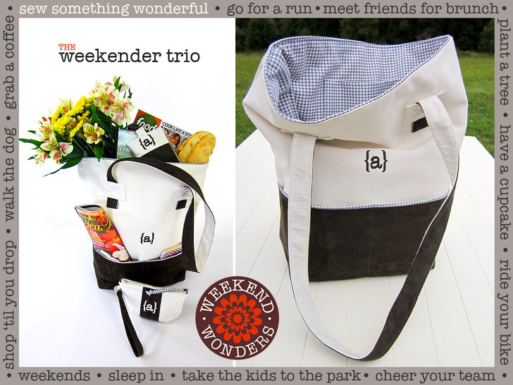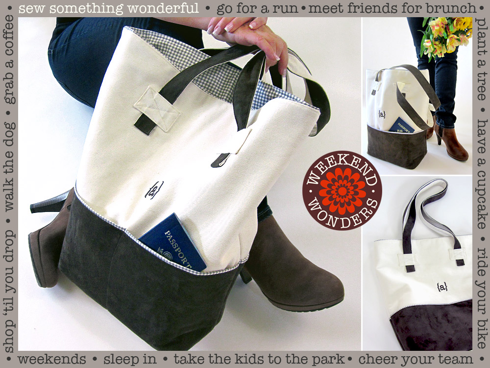 This large weekender tote combines some of our favorite fabric types: nubby twill, soft faux suede, and happy gingham for a pop of color and pattern. It also has the perfect soft feel, which makes it extremely packable. Not so soft and slouchy that it puddles on the floor, but also not so stiff that it seems to stand at attention if you set it down. Fill it up for a weekend getaway. Take it with you on your weekend shopping excursions. Or use it to carry your sewing and craft projects.