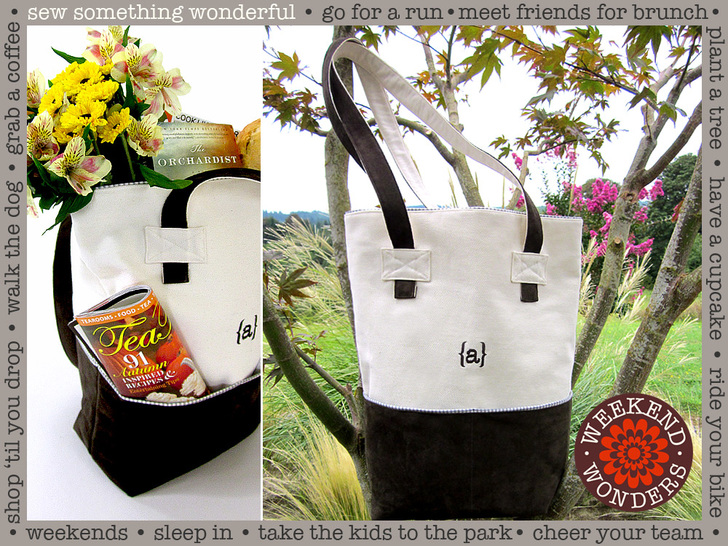 The elegant faux suede handles are soft to the touch with extra length to easily sling the bag over your shoulder. Clever fabric brackets help hold the straps in place and add an interesting detail. And of course, the signature monogram on the front personalizes and stylizes. The alphabet and brackets is a free download in six major embroidery formats.