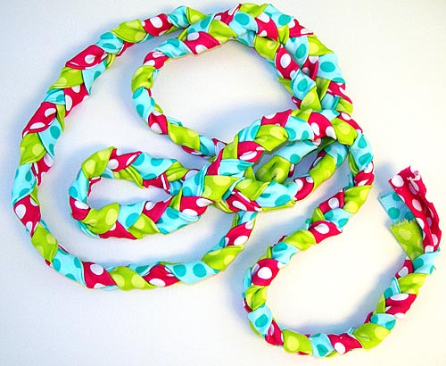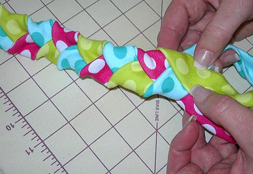 NOTE: It helps to put a few pins down the length of each strip to hold the folds together as you braid. Simply remove the pins as you come upon them.