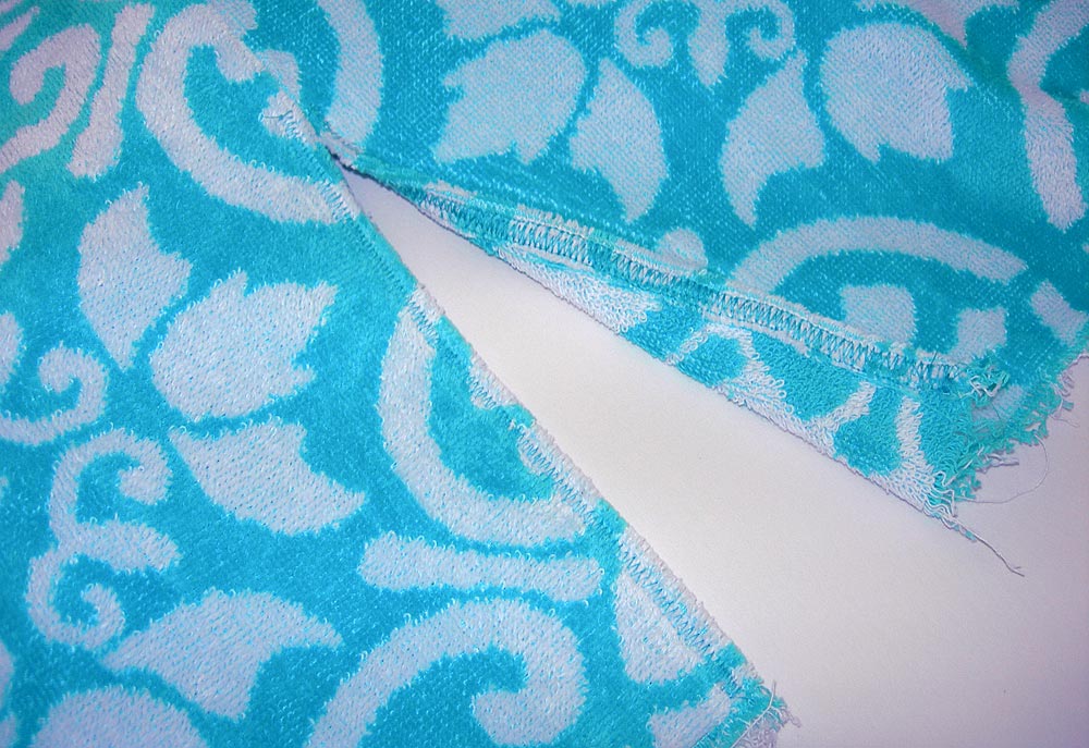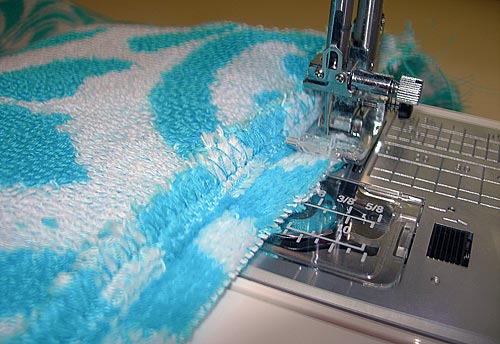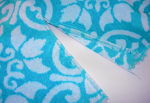- Terry cloth tends to ravel up a storm. We recommend finishing your seams with your favorite method. I used a overcast stitch. You need to be able to press your seam open, so stitch each side of the seam allowance independently. And, continue your finishing all the way up to the very top, ie. along the open 10″ raw edges.