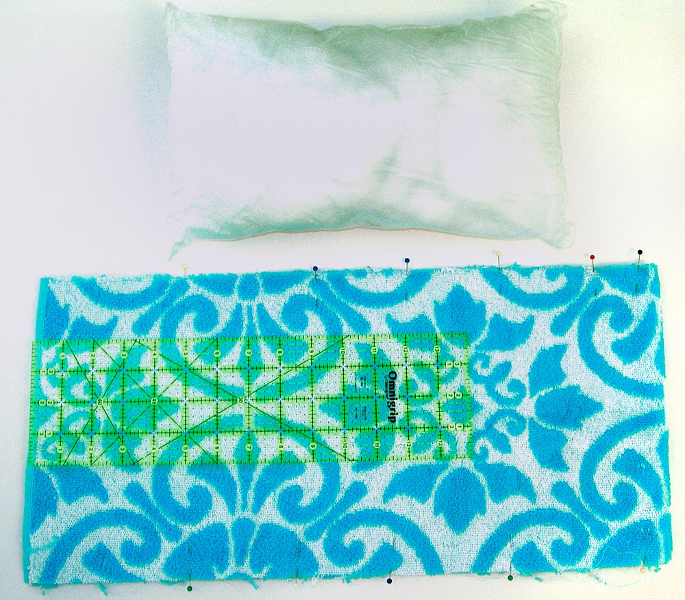 - If you used a towel as long and wide as ours, you should end up with a nice scrap from the middle approximately 10″ x 39″. It’s the perfect size for a little matching beach pillow.