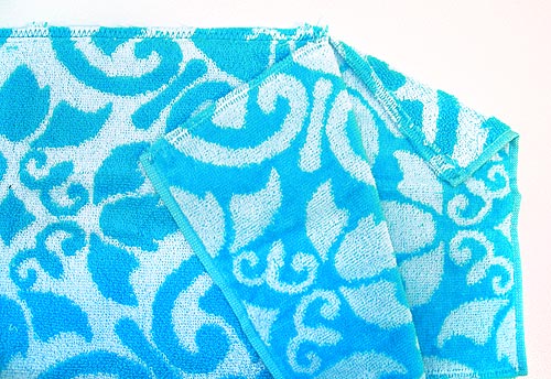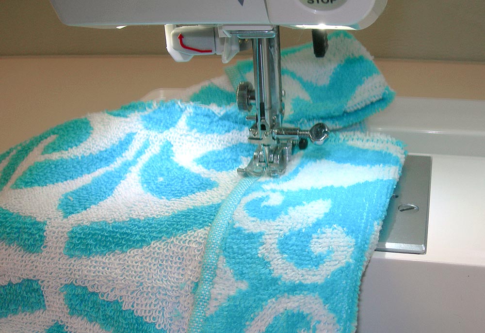 NOTE: If you don’t want to make the braided knit fabric cord as we did, you can substitute approximately 1¼ yards of heavy cording. You need something substantial enough to hold up as a shoulder strap. - All-purpose sewing thread to match towel