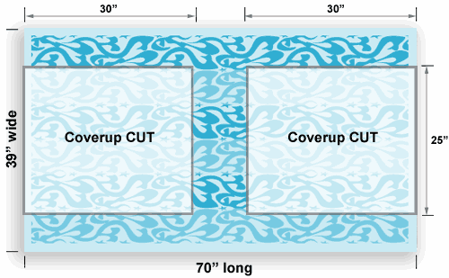 Our coverup is made for a slim adult of average height. We recommend a 39″ wide towel so you can make it smaller or larger to best fit your frame. This extra width also allows you to fussy cut the design to center a fun motif on the front of your coverup.