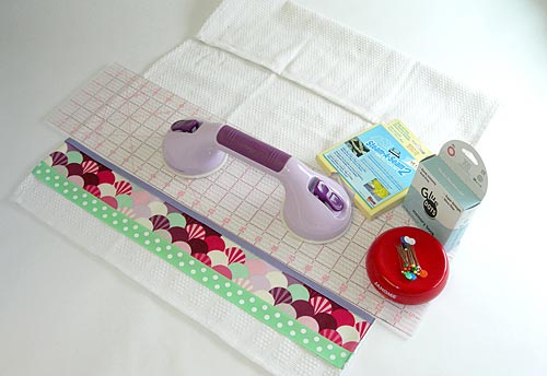 Pre-wash your towels as well as fabric strips and ribbons prior starting. Kitchen towels are meant to be able to handle a lot of laundering and you don’t want the pieces shrinking at different rates; that leads to unattractive rippling. For more about preshrinking, see our tutorial.