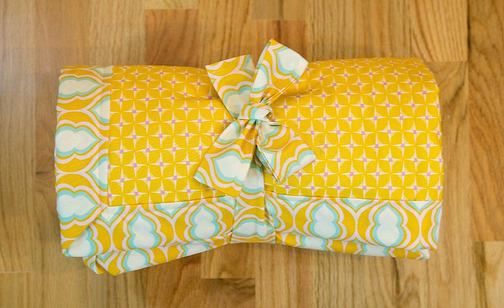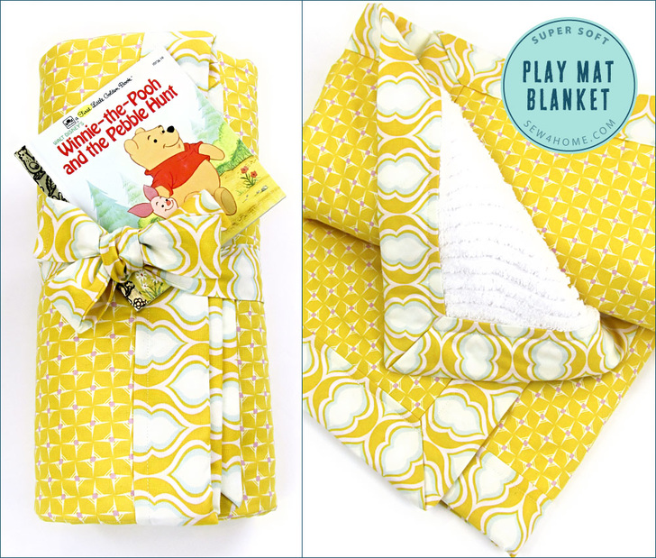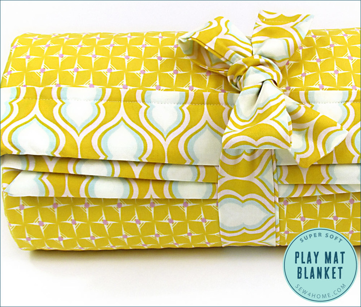 This would be a super baby shower gift idea. Roll it up and tie it and there’s not really any need for wrapping paper. You could tuck in a toy or book behind the tie so there’s something to play with on the play mat.