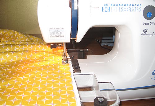 NOTE: We used a standard presser foot, but if you are worried about your accuracy with the multiple layers, use a Even Feed or Walking foot or engaging you machine’s built-in fabric feeding system