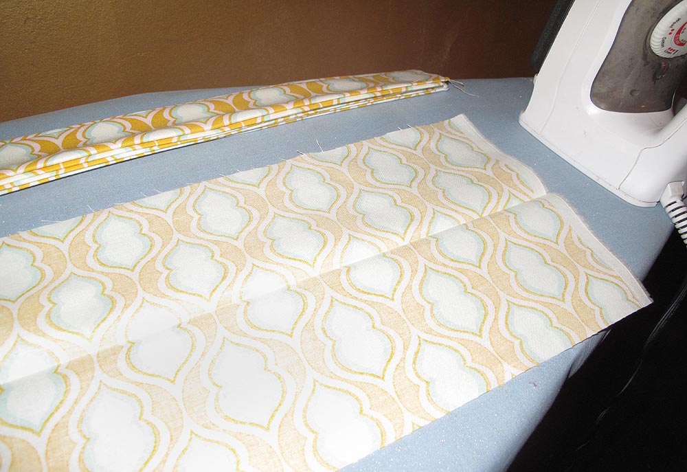 - Fold in each raw side edge to align with the center crease and press.
