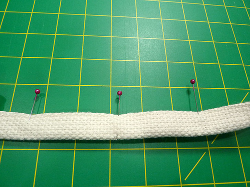 - Fold each strap in half, across the width, and re-pin through the doubled layers from outer pin point to outer pin point.