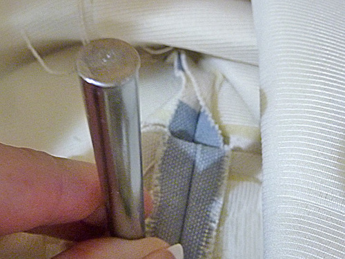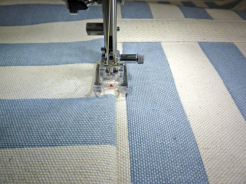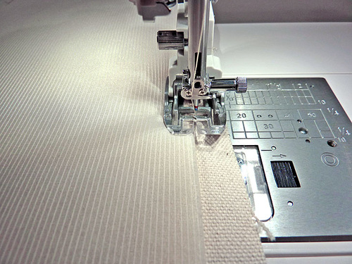 - Re-thread the machine with thread to best match the exterior fabric in the top and bobbin. Slightly lengthen the stitch.