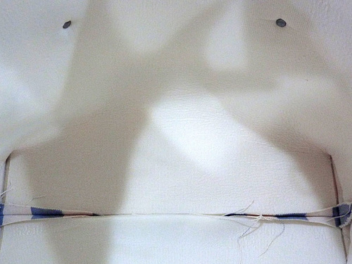 - Find the two 52” webbing lengths, which will become the straps. Fold each length in half to find the center and mark this point with a pin.