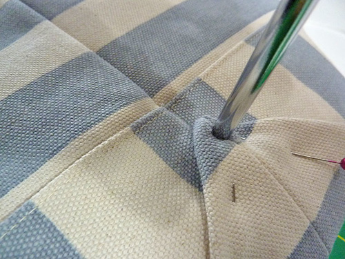 - Turn the bag right side out. Firmly push out the corners, with your finger or a blunt tool, so they are as flat as possible.