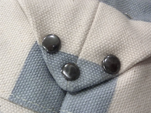 - The double cap rivets are finished front and back, which means you can work from either the front of the back. Because of the thickness of the layers, we recommend working with the setting tools against the inside of the bag.
