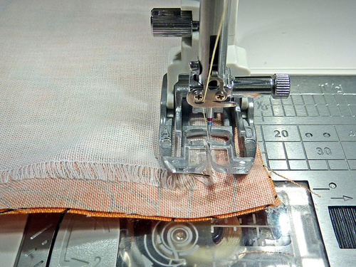 - The machine should still be threaded with thread to best match the fabric in the top and bobbin. Re-set the stitch length to normal.