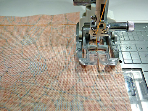 - Using a ½” seam allowance, stitch along both sides and across the bottom.