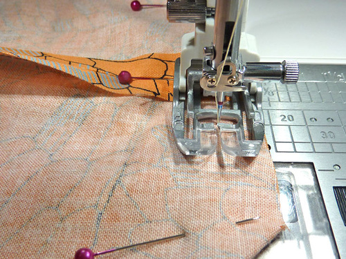 - Using a ½” seam allowance, stitch along both sides and across the bottom. Remember to pivot at the corners.
