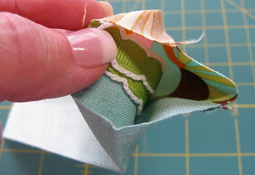 - Turn right side out, pull out ribbon, push out corners so they are nice and sharp. A long blunt tool, such as a chopstick, knitting needle or point turner works well for this. Press again.