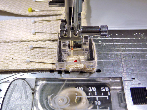 - All-purpose thread in a contrasting color for topstitching; we used natural to coordinate with the webbing