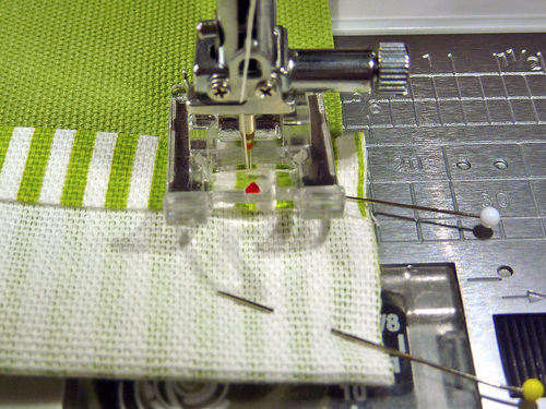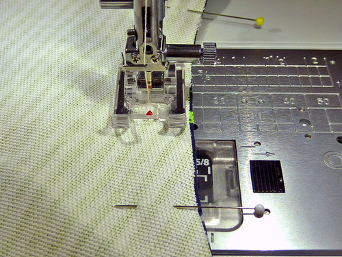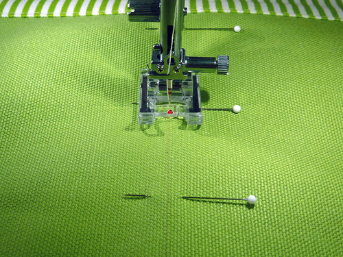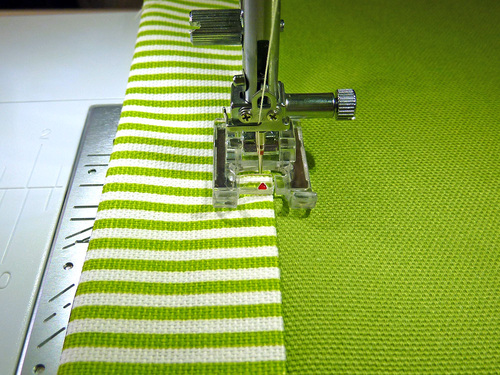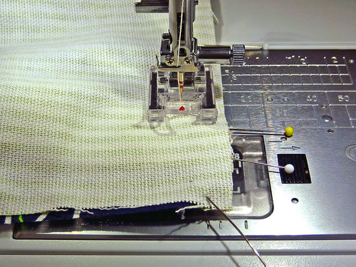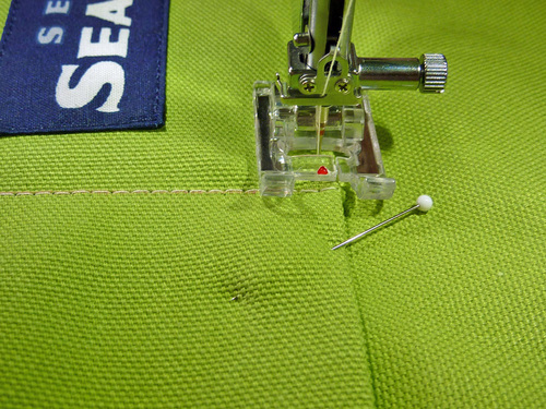 - If necessary, re-thread your machine with contrasting thread for the final topstitching. We also slightly lengthened our stitch.