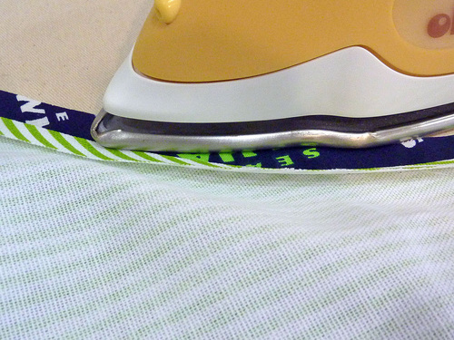 - Press the seam allowance up towards the body of the apron.