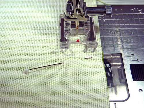 - If necessary, re-thread the machine with thread to best match the fabric in the top and bobbin. Re-set for a standard straight stitch.