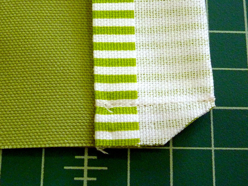 - 1 yard of 44″+ wide cotton duck or similar for the lining and the pocket accent bands; the original Desoto Stripe we used is no longer available; as an alternative, we recommend a Classic Ticking Stripe in Kiwi