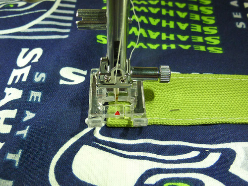 - In all cases, the right side of the webbing should be against the right side of the fabric, which means the zig-zagged ends are facing up.
