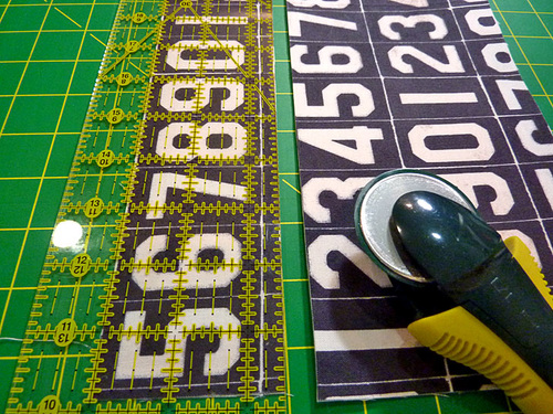 - From the fabric for the apron pocket and the oven mitt exterior (Numbers in our sample), fussy cut the following: