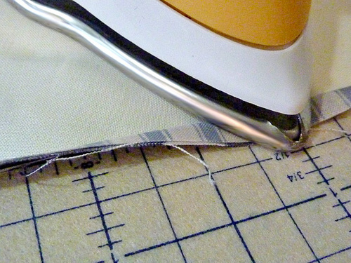 - Press flat, pressing in the raw edges at the opening so they are flush with the sewn seam.