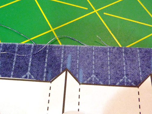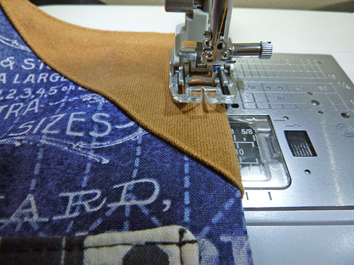 - Go slowly and carefully to keep an even seam. Because the thread is contrasting, it will be clearly visible around the outer edge.