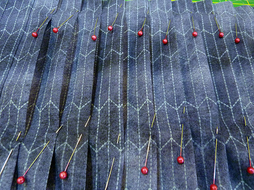 NOTE: If you are brand new to pleating and the above steps seem mystifying, take a look at our Knife Pleats tutorial for more information prior to starting. - You will end up with a wider, flat section at the center. This is where the shirt buttons go.