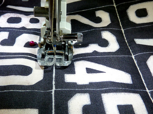 - Draw in quilting guidelines to follow or use lines within the motif as we did. Our quilting runs horizontally along the motif lines that separate the rows of numbers.