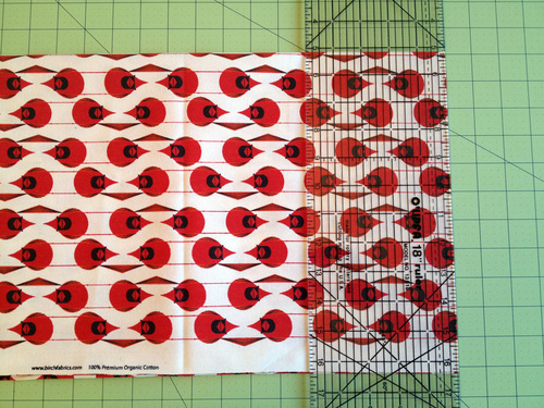 NOTE: This is a wonderfully large tote. Take the time to use the both the gridlines on your cutting mat and your see-through ruler to carefully fussy cut your fabric for the most striking look.