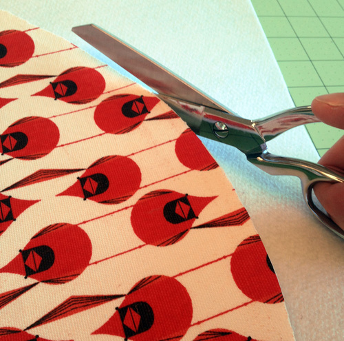 NOTE: Yes, this is a different method than you might be used to when working with interfacing. With this very heavy interfacing, it can be difficult to control prior to fusing, so it’s easier to fuse the fabric to the slightly larger pieces and then trim down the interfacing for a perfect fit to the fabric panels.