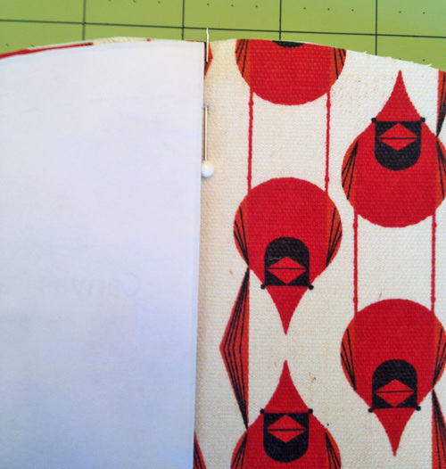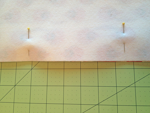 - Open up and re-fold the opposite direction, again placing a pin at each edge of the fold. You can also use your paper pattern to help find these quarter points.