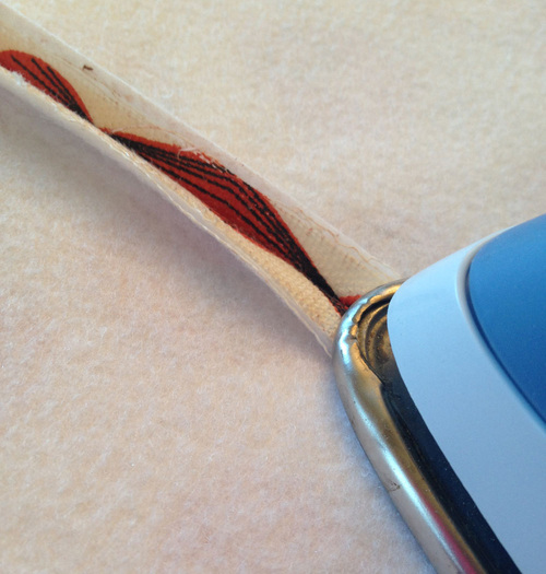 NOTE: Although “just” the lining, you should still take the time to carefully fussy cut in order to create a a nice motif for the top band of the lining that folds over the top.