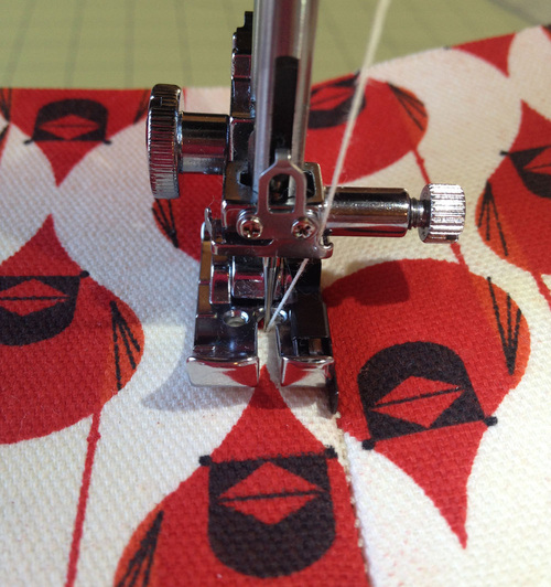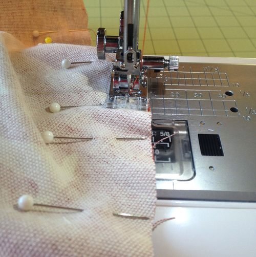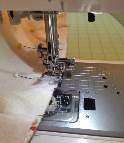 - Re-thread with the standard thread and re-set the stitch length to normal. Stitch together, using a ½” seam allowance.