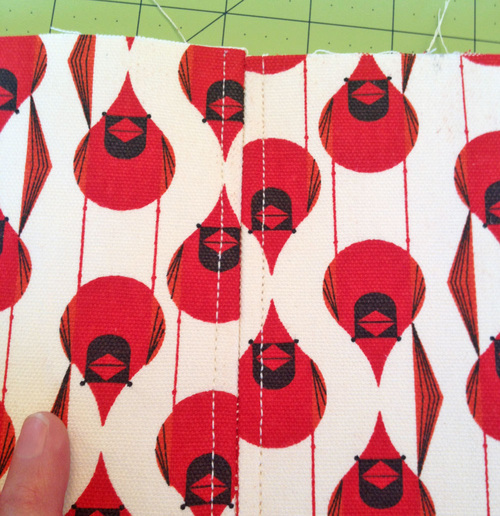 - As above, re-thread and and re-set for a slightly lengthened stitch to topstitch along either side of the seam. This side will be a bit trickier since the panel is now a tube. Work slowly, flattening the fabric in small sections as you stitch. If you see wrinkles, don’t worry, the fabric should press out beautifully.