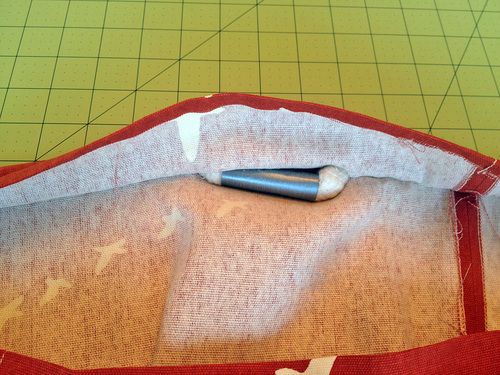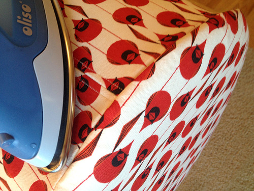 - Turn the basket right side out and iron the seams. It will be very stiff, but proper pressing will help ensure the basket sits flat. If you have a pressing ham, this might help with the curved edge.