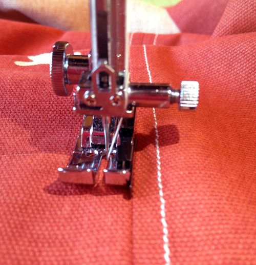 - Topstitch ¼” to either side of the seam. Using a foot with a flange guide is optional, but can make the precise topstitching so much easier.