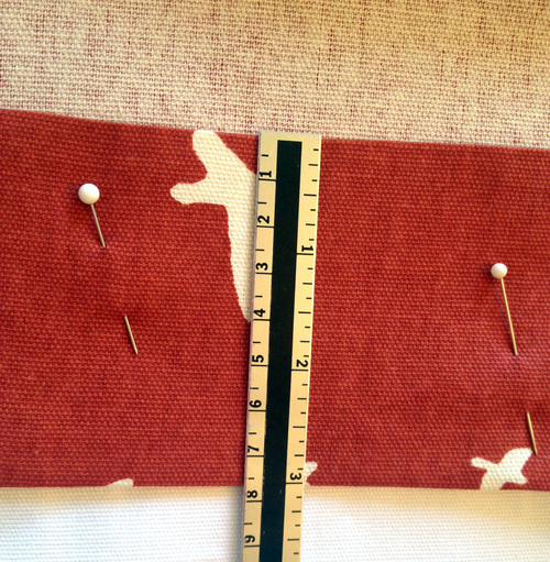 - Place the two exterior rectangles right sides together along one 17″ raw edge. Pin together.