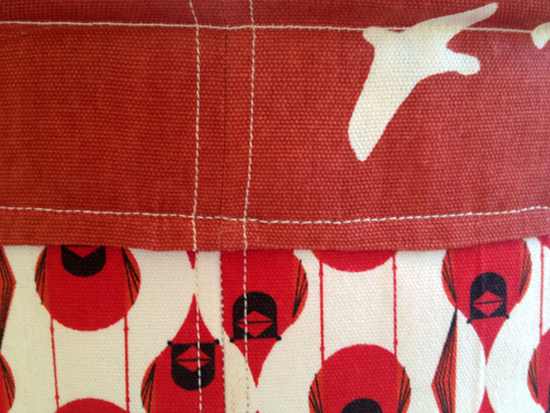 We originally used an organic cotton canvas for our exterior fabric, which provided enough natural heft that a single layer of heavy fusible interfacing was enough to allow the basket to easily stand up on its own. We recommend this type of mid-weight substrate for the best results.