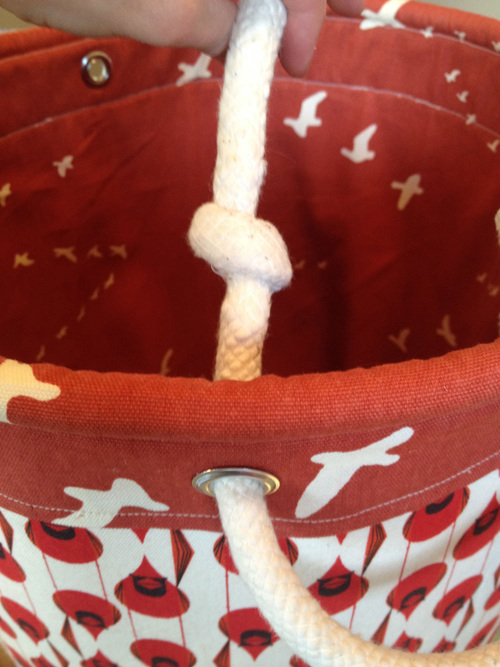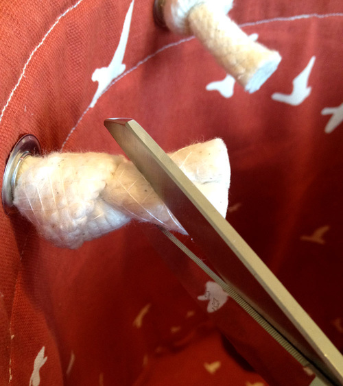- Repeat to attach the remaining handle. Apply seam sealant to the ends to prevent the cording from fraying.