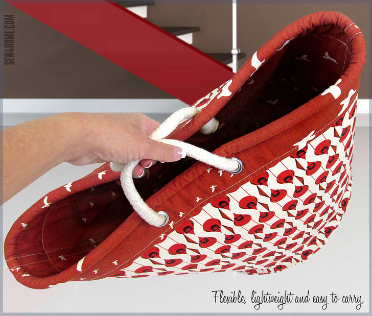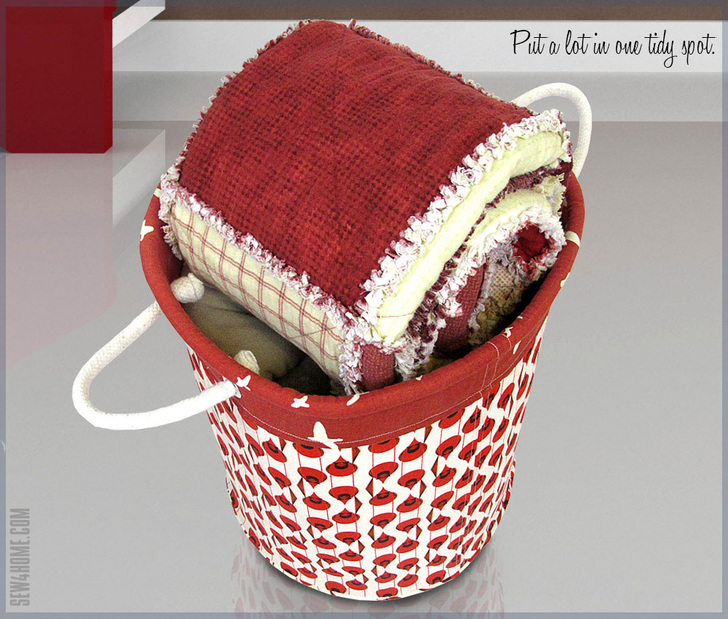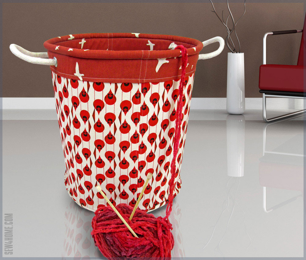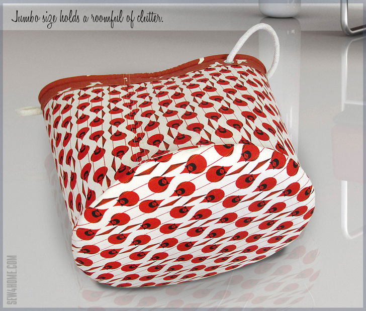 I think we can all agree little things tend to be pretty dang cute: babies, puppies, kittens, Barbie® shoes… but let’s face it, sometimes you need BIG to take care of business. This fun storage bin lives up to its jumbo name. It’s a large-and-in-charge fabric basket that’s ready to take on your bigger storage tasks. From books to blankets to balls of yarn, if you have a lot to keep track of, this project is for you. We chose two bold fabrics: the exterior is a mid-weight canvas, the interior a standard quilting weight cotton. And what is that dynamite looking “rope” ringing the top and creating the handles? Piping cord! Inexpensive yet just the right soft and strong combo.