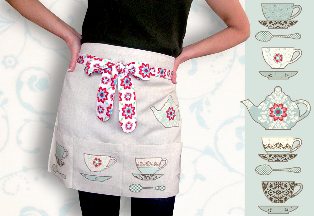Mr. Gladstone had it right, tea time is always a good time. That’s why we chose it as the theme for this pretty half apron with its elegant appliqué accents of a teapot, teacups and saucers, and teaspoons… everything you need for a lovely tea party. So fun to do, you’ll want to make tea for two!