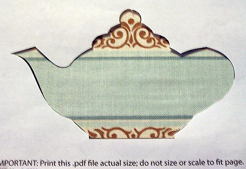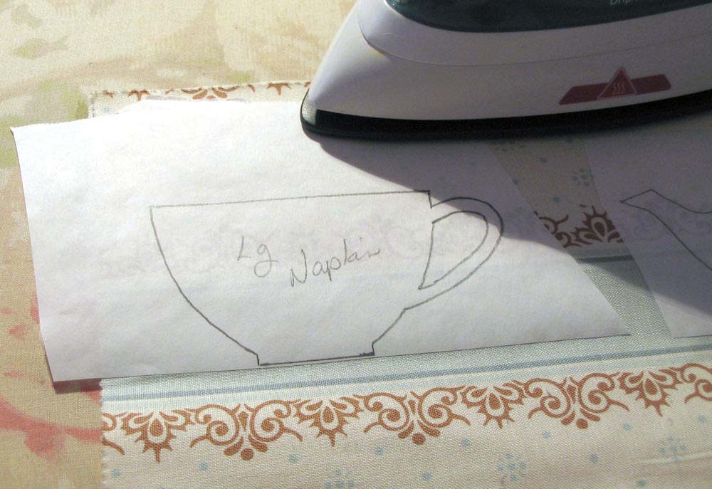 - These will become a second level of appliqué on the teapot and one cup. You can use the cut window technique to best determine their placement.