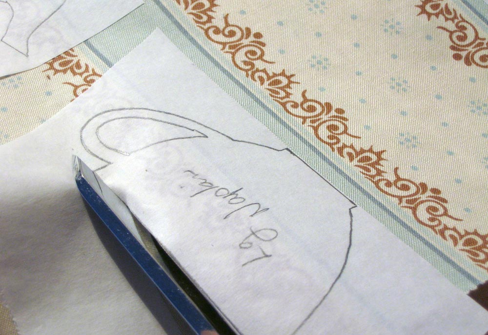 - You can trace the designs directly onto the paper side of the fusible web, and follow the steps from there. If you choose this method, remember the images will be reversed in the finished piece, so make sure you are tracing in the correct direction (ie. flip over the template piece and trace it from the back).