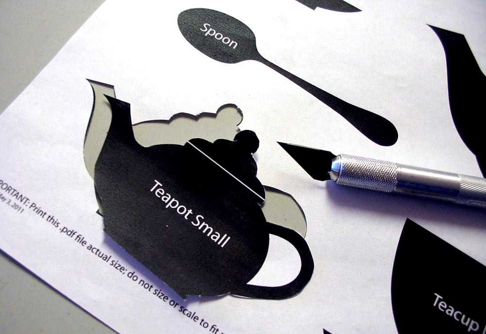 - Download and print the Kitchen Tea Time Shapes Template. For this project you’ll use the Large Teapot, the Large Teacup. and the Teaspoon.