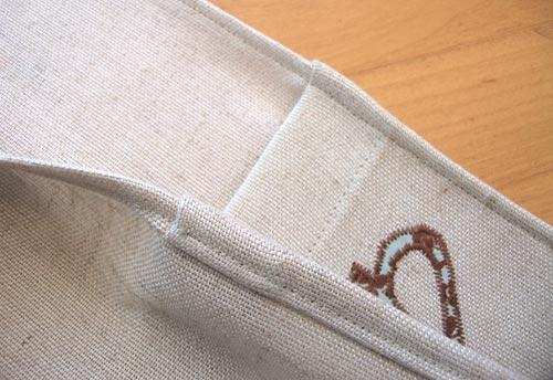 - Topstitch close to the fold. This full 1″ double-turned hem will become the upper edge of the pockets.